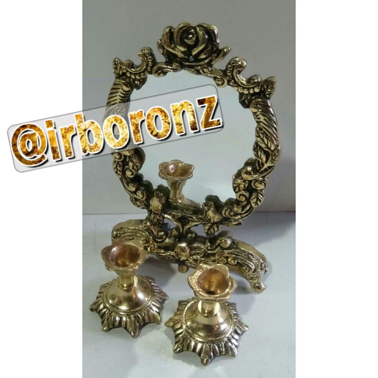 این آینه و شمعدان یکی از محصولات بسیار زیبا ، با کیفیت و لاکچری شرکت است که این محصول دارای اندازه کوچک می باشد و برای سیسمونی بچه استفاده می شود. مدل این آینه و شمعدان ، تاج گلدار است و این محصول شامل یک آینه و دو شمعدان است. در ساخت این آینه و شمعدان برنزی ، دقت و ظرافت بسیار بالایی به کار رفته است و بدنه این محصول کاملا یک دست می باشد و هیچ گونه زبری روی این محصول نیست.